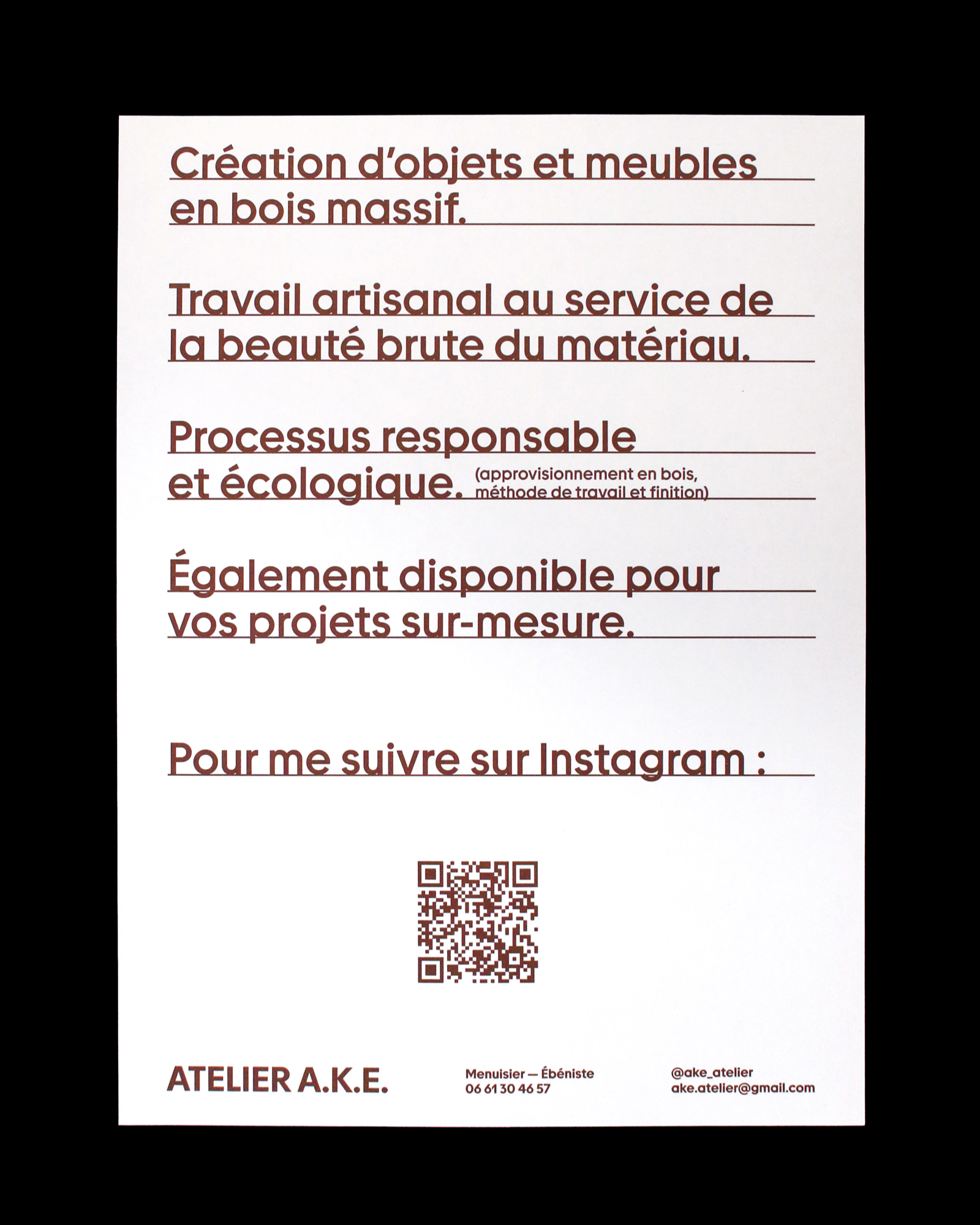L’identité visuelle de l’atelier A.K.E. traduit cette simplicité, cette franchise : l’artisanat et le savoir-faire, sans fioritures.